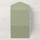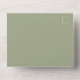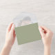 This design features a simple minimalist modern elegant sage green, with a QR code rsvp online website, a vellum photo picture overlay style, spring or summer or anytime romantic colors, a stylish trendy calligraphy script font, a modern guest response reply online, a tri-fold wedding invitation template, an elegant seal and send design, a photo wedding invitation template, a simplistic solid color grey text