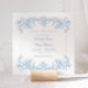 The matter paper is our sample of choice -- it's a reasonably priced, good quality, nice feeling paper stock. We were a little concerned the muted rustic blues might not reproduce all that well (usually by light colored samples), but they're just gorgeous! The white lettering is perfect in combination with the blue background, and the typography is all easy to read.