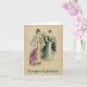 Two elegant Victorian Ladies dressed in colorful gowns. Greeting: Congratulations or Customize with your own personalized greeting. Image from The Designer Magazine - November 1899 overlapped on a shabby old grunge end paper scanned from an old vintage 1867 era book. Light yellow or beige in color.