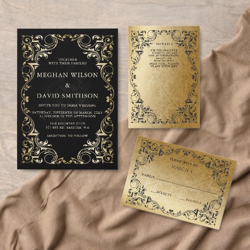 Elegant Vintage Black Gold Wedding SetDesigned by Maria G