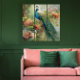 Elegant Vintage Blue Green Peacock Pink Flowers Triptych