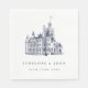 These elegant wedding napkins feature a vintage illustration of a castle, which you can replace with an image of your wedding venue (transparent or white background preferred). Elegant dark blue lettering lays out the couple's names and the date of the marriage.