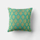 Elegant Vintage Chic Teal Gold Damask Throw Pillow