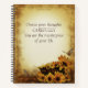 "Choose your thoughts carefully. You are the masterpiece of your life." Positive Thinking Quote on this writing journal notebook. The elegant vintage design of sunflowers and butterflies adorn the positive affirmation. Many inside varieties; sketches, lines, etc. Use as a Bullet Journal. Makes a great gift idea.