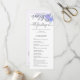This elegant wedding program card is designed with a vintage watercolor floral theme in soft shades of purple and grey, giving it an antique and timeless look. Perfectly suited for romantic and classic weddings, this ceremony program outlines every important part of the celebration — from the solo songs, seating of parents, and processional to the vows, rings, prayer, and pronouncement of marriage. The watercolor floral artwork frames the card beautifully, making it not only functional but also a keepsake for guests. With its old-style design, delicate flowers, and refined layout, this wedding program card complements any floral stationery set and adds charm to your wedding day.