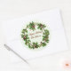A lovely vintage style graphic image of a holly wreath frames this elegant Christmas sticker. You can customize this unique label with your name and greeting. The green and red holly wreath is set on a pastel green striped background.