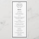 This elegant vintage monogram wedding menu sets the perfect tone of sophistication for your special day. Featuring a timeless black and white design with a classic crest monogram, it adds a refined touch to your ceremony. Personalized easily with all of your information, it makes guests feel informed and excited for the meal to come. Printed on your choice of high-quality material, the invitation is both durable and stylish, ensuring it looks stunning in person. Simplistic and elegant it's a beautiful keepsake, it’s a lasting reminder of the celebration of your love.