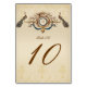 Elegant Vintage Peacock Wedding Table Number Card with dark brown script font and monogram initial for your wedding reception. WeddingCentre© at Zazzle. Change the number and then add one to your cart. Repeat. You will have 10 UNIQUE orders of "1" in your cart, each with a different number, if you want cards with table numbers 1 to 10. Other colors available.