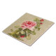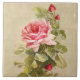 Lovely spray of elegant vintage pink roses and rosebuds in warm tones on painterly artisan tan background.