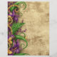 This scrapbook paper features an elegant and intricate design that is perfect for adding a touch of sophistication to any project. The left side of the paper is adorned with vibrant purple and gold flowers, lush green leaves, and swirling golden accents, creating a rich and opulent look. The background is a textured beige with subtle floral patterns, providing a vintage and timeless feel. This design is ideal for anyone looking to create luxurious and eye-catching scrapbook pages, greeting cards, or other paper crafts. The reverse side of the paper is a solid purple, perfectly complementing the ornate design on the front and offering versatility for various creative uses.