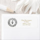 Vintage black and white illustration of a bee, imperial crown and flower and butterfly wreath on white background with editable return address and name, either for family or your business, apiary etc.