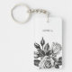 This trendy floral keychain has a black and white illustration of a Victorian tea rose, and your name in elegant matching text.