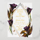 Your invited guests will gush over this romantically beautiful invitation. These Gold Foil Invitations display bold dark purple Calla Lilies overlaying a metallic frame with bright gold foil font.