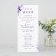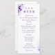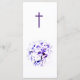 Design features the images of delicate violets in top left and lower right corners. Monogram of Bride and Groom are displayed at top followed by Menu heading and menu options. All text is customizable. Reverse features a cross and a larger image of a violet bouquet. Designed to coordinate with the "Elegant Violets Catholic Wedding Suite."