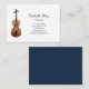 Simple performer musician business card, with an elegant violin image on a white background. With navy blue customizable lettering, you add with own information. Great for spreading the word about your musical instrument performing or teaching business!
