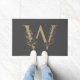 Elegant W Boho Floral Monogram Initial Gray Gold Doormat