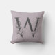 Elegant W Boho Floral Monogram Initial Lilac Gray Throw Pillow