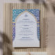 Plain white envelopes are included with paper invitations and will come to fit the invitation size you select. If you don’t need the envelopes, you may choose to not receive them by selecting the dropdown below "Envelopes" and choosing "None." If you’d like to have a design on your envelopes, you can browse all of these available envelopes to find the design that complements your Elegant Walima Invitation Teal Turquoise.