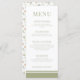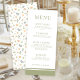 Delight in the elegance of these botanical whimsical menu cards, featuring greenery leaves and warm vanilla floral motifs, perfect for a spring or summer wedding.
