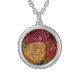 Elegant Warm Painted Red Orange Yellow Art Roses Silver Plated Necklace