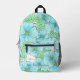 Elegant Watercolor Aqua Blue Flowers and Greenery Printed Backpack
