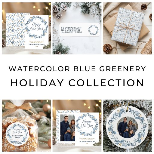 Elegant Watercolor Blue Greenery HolidayDesigned by Rocio Vazquez