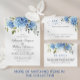 Plain white envelopes are included with paper invitations and will come to fit the invitation size you select. If you don’t need the envelopes, you may choose to not receive them by selecting the dropdown below "Envelopes" and choosing "None." If you’d like to have a design on your envelopes, you can browse all of these available envelopes to find the design that complements your Elegant Watercolor Blue Hydrangea Rehearsal Dinner Invitation.