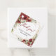 Elegant boho design for wedding favor tags features watercolor blush and burgundy roses flowers mixed eucalyptus greenery mixed greenery foliage woven into faux gold frame. Modern script lettering.