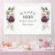 Celebrate a special milestone birthday with this beautiful banner that has floral borders in burgundy and pink roses on each side of the elegantly placed text. Colors include pale blush pink, deep burgundy red and plum mixed with ethereal greenery and tiny white accent flowers. Personalize the text template with your information. Shown here as a 100th birthday celebration, you can edit the age to any age birthday!
