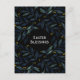 Watercolor green branches on a dark background. Elegant and stylish watercolor Easter Postcard