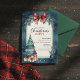 This sophisticated Christmas party invitation showcases a beautiful watercolor background in deep blue tones with a golden frame. The design features evergreen branches, holly, red berries, and a satin ribbon bow at the top, complemented by a decorated Christmas tree and wrapped presents. Perfect for elegant holiday celebrations with a modern artistic touch. Customize with your party details.