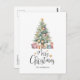 Send festive wishes in style with this elegant Christmas postcard featuring a hand-painted watercolor Christmas tree with wrapped gifts and the message “Merry Christmas.” Personalize it with your name or family name for a warm, thoughtful holiday greeting.