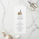 Simple and elegant wedding program featuring watercolor illustration of a church.