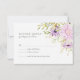 Modern and elegant Wedding RSVP Card featuring a floral bouquet of soft, watercolor daisies in shades of lilac and blush violet, and white, with lush green botanical leaves in shades of love. Personalize your wedding details in smooth black, accented with beautiful modern calligraphy.