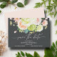 Beautiful watercolor of white and green hydrangeas with pink and cream roses, daisies, small blossoms and leaves create these wedding save the date cards with your details in chic lettering white lettering on a dark background. MATCHING items in our collection.