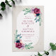 An elegant burgundy and navy watercolor flowers wedding invitation. It features hand-painted florals with eucalyptus leaves and roses.