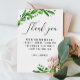 Elegant watercolor greenery floral script Thank You Card for summer birthday.