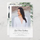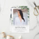 This stunning modern memorial program features a large photo on the front with a white and watercolor greenery background. The bottom is an angelic like white fade and text. The back features a 6 photo collage. The bottom can be used as order of service for a program, poem or any other text.
