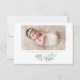 Elegant and whimsical photo birth announcement featuring watercolor pattern of eucalyptus and other foliage. This greenery photo birth announcement is perfect for gender-neutral baby birth announcements.