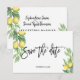 Elegant and Unique Watercolor Lemon Branch card design featuring watercolor lemon branch with flowers, leaves and fruits, gorgeous, modern "save the date" handwriting typography. Use Customize tool to add your info, change the fonts, colours. For matching items, please, visit my Watercolour Lemon Collection.