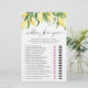 Elegant Watercolor Lemon Wedding Shoe Game Card