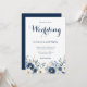 Elegant Watercolor Navy Blue Floral Script Wedding Invitation