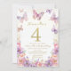 Elegant Watercolor One 4th Birthday Butterfly Gir Invitation