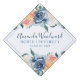 Lovely peach and blue watercolor florals with greenery graduation cap topper. Elegant with script name in blue type.