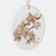 A watercolor masterpiece unfolds before your eyes as a delicate tree blooms with cascades of blossoms in shades of peach, blush pink, soft green, and ivory white, evoking a sense of timeless elegance.
