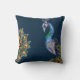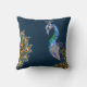 Elegant Watercolor Peacock Navy Throw Pillow