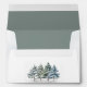 This design features an elegant Christmas custom envelope, with a watercolor pine trees, winter green, with the return address on the back flap, with a simple minimalist, script typography, with woodland forest, a seasonal design, a classic calligraphy style.