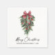 Modern Elegant Calligraphy Ink Script Watercolor Pines Winter Greenery with Burgundy Red Ribbon Bow Christmas Ornaments, Pine Cones and Holly Berries Merry Christmas Cocktail Paper Napkins