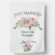 What a fun way to extend your wedding fun with a JUST MARRIED flag. Us the flag for your reception then display at home! Lovely pink rose swag and bouquet with your wedding date along with your Mr. & Mrs, Mr & Mr or Ms & Ms names! Be sure to personalize both sides. This design matches the SMELL THE ROSES WEDDING COLLECTION.