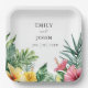 Elegant Watercolor Tropical Flowers Wedding Paper Plates